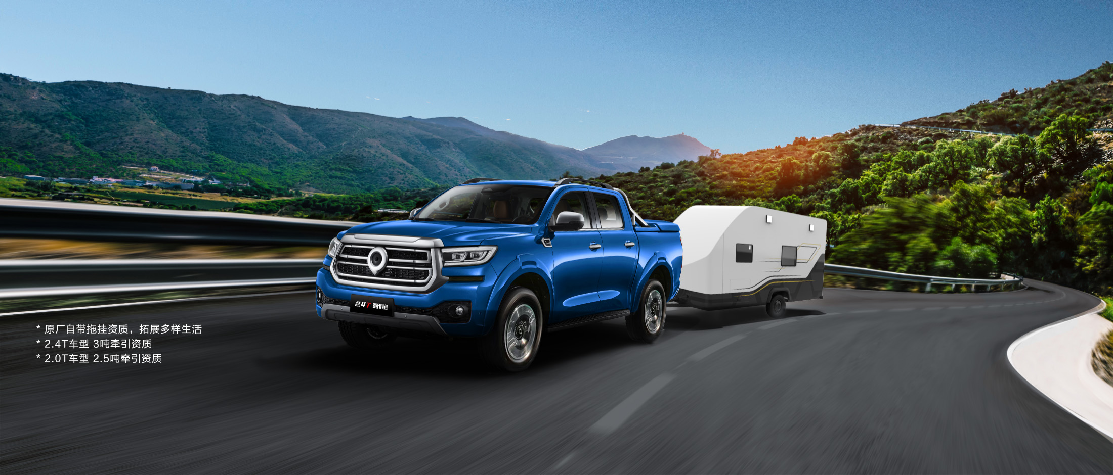 2.4T柴油发动机最大净功率135kW,最大净扭矩480N•m,1500转时即可实现,拉货、爬山、越野,都能游刃有余
