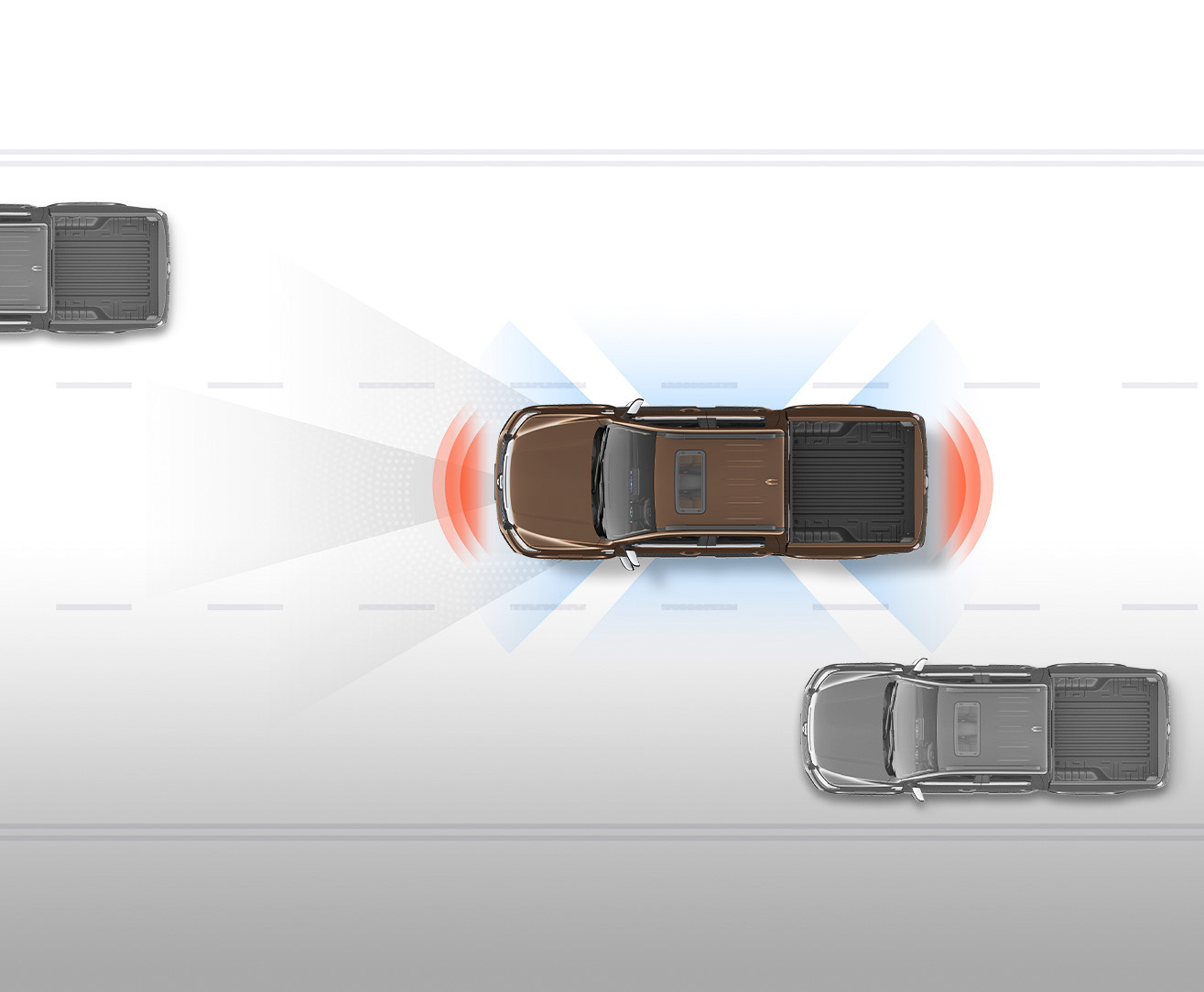 采用高强度笼型车身(车身分为溃缩吸能区及高强度座舱区,能在碰撞发生时吸收碰撞能量,有效减少驾驶室的变形)+梯形车架(车身骨架应用高强度钢)
